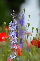 Een kleurrijk schouwspel tussen de klaproosjes en riddersporen. Hiermee is het iedere dag zomer in huis. deze zijn gefotografeerd in het Heemskerkse tuindersgebied.