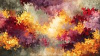In dit abstracte werk zie je het zonlicht door het blad met de mooie herfstkleuren vallen. Prachtig hoe de gouden en rode tinten een warme sfeer geven!