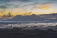 Er hangt een sfeer van eeuwigheid over het Parque Natural de Los Volcanes. Ochtendgloren kleuren de lucht in zacht goud en violet, terwijl mistwolken over het donkere lavagesteente drijven als geesten uit vervlogen tijden. Het landschap ziet er oeroud uit - alsof de aarde net heeft uitgeademd.