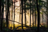Een fantastische zonsopkomst en mist zorgen voor een mooie en magische plaat van het Speulderbos op de Veluwe.