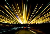 Verlichting van het snelwegrestaurant "Dammer Berge" over de snelweg A1 's nachts