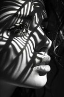Dit verbluffende portret van een vrouw vangt het betoverende spel van schaduwen op haar gezicht door een ingewikkeld patroon. De artistieke licht- en schaduweffecten geven het beeld een mysterieuze en diepe sfeer, terwijl haar intense blik door de duisternis heen schijnt. Perfect voor liefhebbers van artistieke en sfeervolle fotografie…