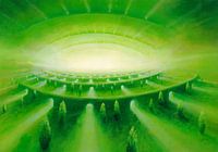 Dit schilderij is een indrukwekkend werk dat op kunstige wijze de fascinatie van licht en schaduw vastlegt. Het geeft de indruk dat licht op allerlei manieren wordt gestuurd en gemanipuleerd om een indrukwekkende visuele reis te creëren.