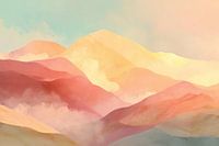 Met tinten van zachtroze, zand, mistblauw en goudgeel roept het werk een gevoel op van stilte en verwondering. Het licht lijkt tussen de lijnen door te schijnen en geeft diepte aan de bergachtige vormen, zonder ooit opdringerig te worden. De sfeer is licht en luchtig, alsof je kijkt naar een verre horizon onder het zachte licht van een opkomende zon.