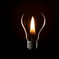 Creatief beeld van een lucifer met een gloeilamp. De open bovenkant van de gloeilamp geeft de vlam van de lucifer ruimte.