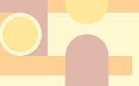 Een abstract schilderij van geometrische vormen in lichte pastelkleuren met een moderne en stedelijke uitstraling.