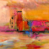 Acrylschilderij...lichtlandschap met schaduwrijke huizen