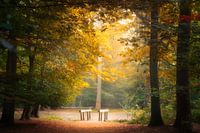 Lichten in het bos in de herfst. Een kleurrijk landschapsbeeld