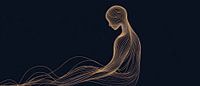 Een fascinerend spel van licht en schaduw ontvouwt zich hier, waar delicate lijnen het silhouet van een peinzende figuur strelen. De zachte, gouden tinten op diepzwart creëren een sfeer van rust en introspectie. Dit kunstwerk vindt zijn perfecte plaats in de slaapkamer, waar het aanzet tot dromen en reflectie.