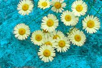 Een fotobewerking van Margrieten in mijn tuin. In de zomer bloeien ze uitbundig en ze waren zo zwaar dat ze over een betonnen paadje zijn komen te hangen.