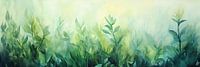 Details: planten schilderij, groene bladeren, natuur kunst, organische vormen, zachte kleuren, botanische kunst, impressionistisch schilderij, milieuvriendelijke kunst, serene kunst, artistieke natuur