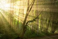 Een statige boom wordt prachtig goud verlicht door de opkomende zon