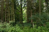 Een donker bos met een mysterieus hekje en een lichte plek waar je ieder moment een elfje, kabouter of hertje verwacht...of misschien een heks