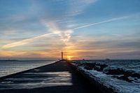 Ondergaande zon aan het einde van de pier van Hoek van Holland