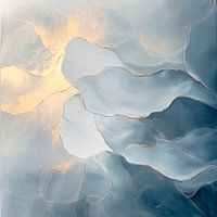 Een zacht spel van licht en schaduw ontvouwt zich in harmonieuze blauwtinten, afgewisseld met een vleugje gouden stralen. De gebogen vormen lijken te zweven in een dromerige dans, terwijl de koele tinten een rustgevende, bijna mystieke sfeer creëren. Vloeiende texturen smelten hier samen tot een uitnodigende, abstracte compositie.