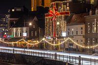 Een sfeervolle opname van de Roerkade in Roermond, vastgelegd met een lange sluitertijd. De lichteffecten van voorbijrijdende auto's contrasteren prachtig met de historische gebouwen en feestelijke verlichting. Deze foto benadrukt de levendige mix van geschiedenis en moderne dynamiek die de Roerkade kenmerkt. Ideaal voor liefhebbers van avondfotografie en stadse sfeerbeelden.