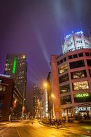 De Lichttoren in Eindhoven verlicht tijdens Glow 2016. Achter dit gebouw stond een lichtkunstwerk wat een speciale belichting opleverde.
