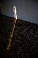 Lichtval. Een streep van licht op muur en grond. Fotografie.