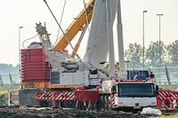 Deze mobiele telescoopkraan was ingehuurd om een windmolen langs rijksweg A4 bij Leiden te ontmantelen.