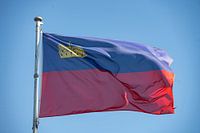 Flag of Liechtenstein flying in the wind with a blue sky background.country, land