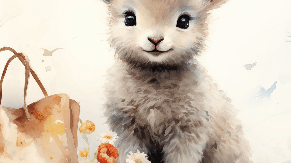 Lief paaslammetje en paasmandje in lentetuin aquarel kunstontwerp