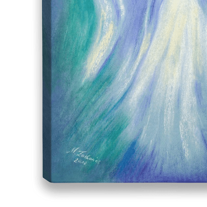 Dit engelenschilderij was mijn eerste engelenschilderij. Het inspireerde me om nog veel meer engelschilderijen te maken. Mijn hand werd geleid door een onzichtbare kracht. Het is gemaakt in de pasteltechniek en is 100% handgeschilderd en handgesigneerd.