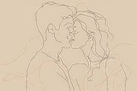 Deze prachtige lijntekening illustreert de intieme tederheid van een stel in een intieme omhelzing. De vloeiende lijnen brengen een zachte, romantische sfeer over, perfect voor moderne woon- of slaapkamers. Deze minimalistische kunst is een ideaal cadeau voor geliefden en romantici die subtiele maar expressieve decoraties waarderen. De elegantie van de eenvoudige lijnen vat de essentie van liefde en verbondenheid samen.