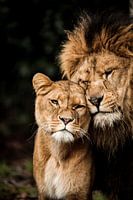 Liefde tussen twee leeuwen. Ik vind de mannelijke leeuw sowieso imponerend met zijn manen en die indringende ogen, maar zo samen met deze vrouwelijke leeuw is hij weer heel vertederend, ze hebben iets speciaals wat je gewoon op de foto wil hebben.