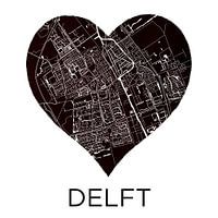 Liefde voor Delft  |  Stadskaart in een zwarte hart van WereldkaartenShop