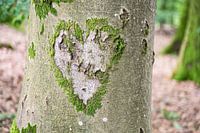 Liefde voor de natuur (hartvorm omlijst door mos op een boomstam) van Birgitte Bergman