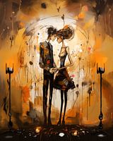 Dit intrigerende abstracte schilderij weerspiegelt de diepte en warmte van een liefdevol verliefd stel. Geschilderd in rijke aarde tinten geeft dit kunstwerk een gevoel van eenheid en harmonie waarbij de contouren van het stel zich vermengen en vervagen in hun omgeving.