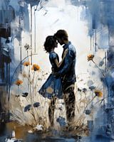 Dit intrigerende abstracte schilderij weerspiegelt de diepte en warmte van een liefdevol verliefd stel. Geschilderd in rijke aarde en blauwe tinten geeft dit kunstwerk een gevoel van eenheid en harmonie waarbij de contouren van het stel zich vermengen en vervagen in hun omgeving.