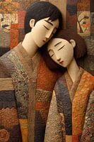 3D abstracte kunst kleurrijk fictief koppel met heldere kleuren ,fijne details en structuur.