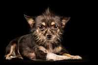 Chihuahua Yorkshire Terrier Mongrel, schattig hondje op zwarte achtergrond