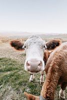 Zoete koe uit Mariaberg bij Kempten met Allgäuer bergen op de achtergrond in aardse stijl