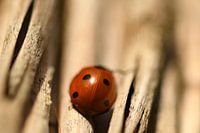Het is nog maar februari, maar de vorst is voorlopig verdwenen. Het zonnetje schijnt en voorzichtig komen enkele insecten tevoorschijn. Zo ook dit lieveheersbeestje, dat zich lekker laat opwarmen door de zon. Hij heeft een prachtig plekje gevonden op een schutting die van natuurlijk materiaal is gemaakt, ik geef hem groot gelijk. Genoeg…