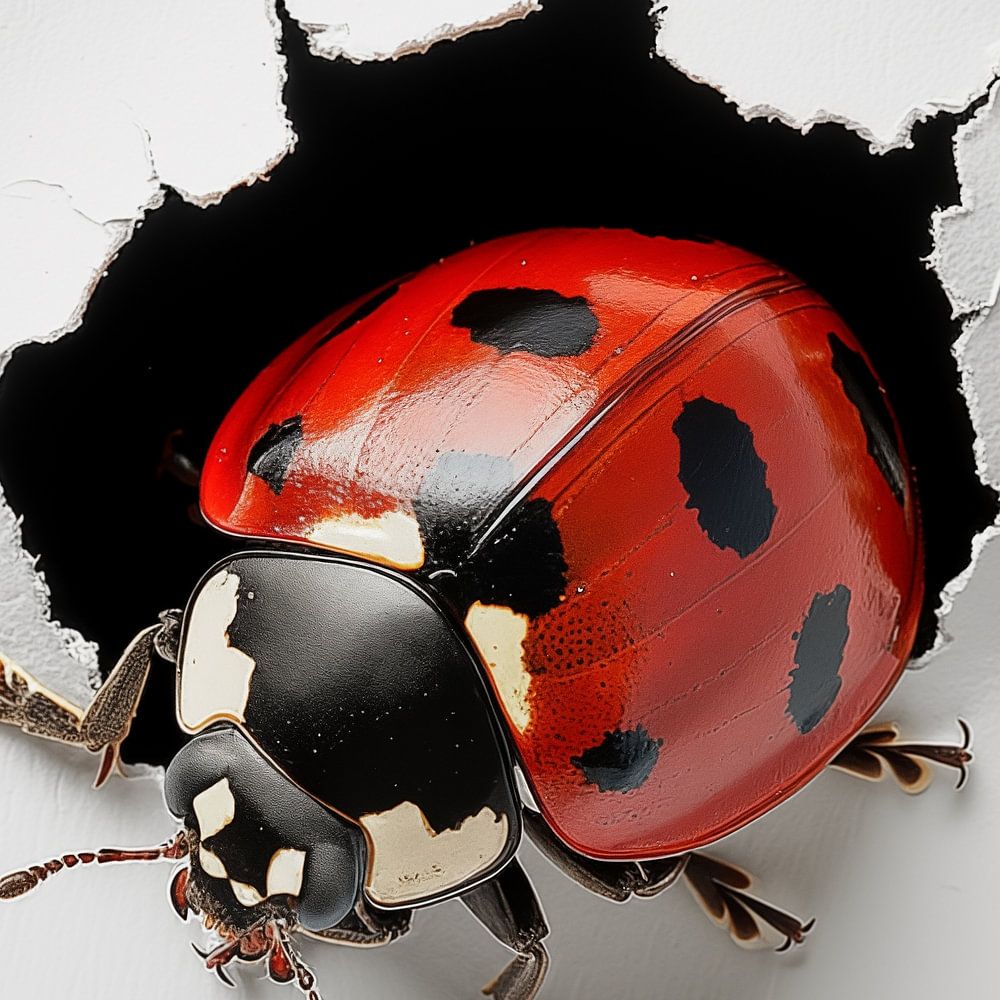 Lieveheersbeestje uit de muur schilderij dat een prachtige aanvulling zal zijn in elke kamer. Met zijn unieke en stijlvolle uitstraling trekt het direct de aandacht. De schitterende kleuren en het bijzondere ontwerp maken dit kunstwerk 100% uniek en origineel. Het is de perfecte fotoprint om je interieur helemaal compleet te maken.