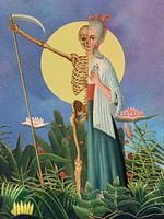 Het is een dubbelportret van een vrouw samen met de "grim reaper", beiden afkomstig uit een schilderij uit de 18e eeuw.