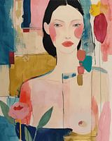 "Life is better in colour", kleurrijke en hippe illustratie. Dit werk is helemaal van nu! Kies zelf het formaat en materiaal voor deze blikvanger. Portret van een jonge vrouw met een ontblote borst.