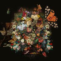 Een prachtige mix media compositie van schitterende bloemen en blije vlinders en insecten. Een waterval van kleur en leven. Dit werk is zorgvuldig samengesteld uit klassieke kunstwerken van meerdere meesters waarvan hun werken in het Rijksmuseum te Amsterdam hangen. Nu hier als hoge kwaliteit reproductie te bestellen bij Werk aan de Muur.