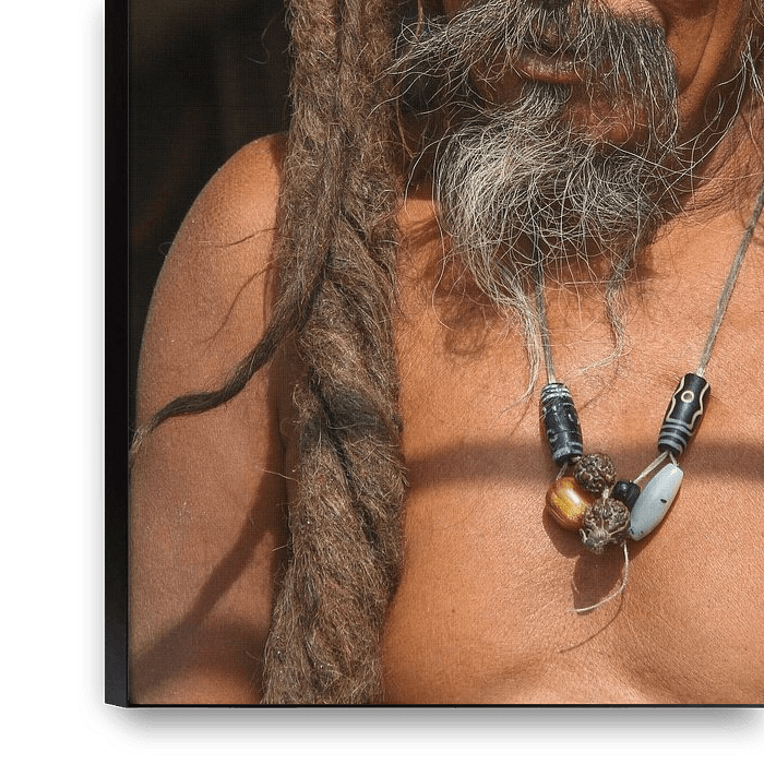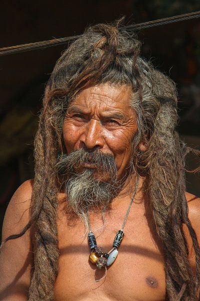 Zijn haar is zo lang dat hij er zonder moeite op kan staan en met zijn zongebruinde en doorleefde verschijning aanschouwt hij alles wat er aan hem voorbij…
