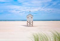 Drenkelingehuisje Terschelling met duingras op de voorgrond tegen mooie blauwe lucht
