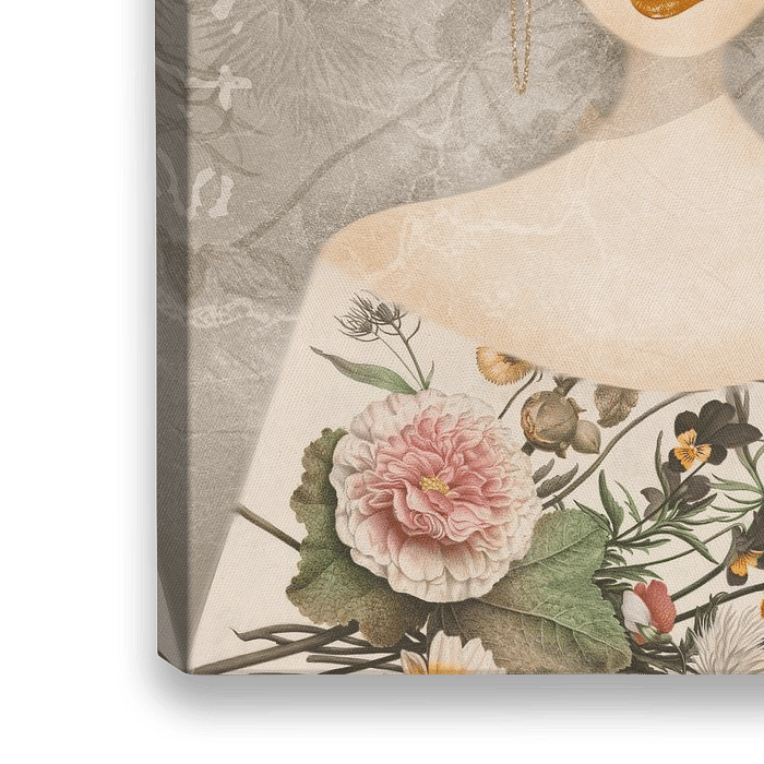 Illustratief, surrealistisch portret, bewerkt met botanische oude meester schilderwerken en een retro lampenkap:)