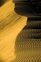 De golvende lijnen, het sterke contrast en de gouden warme kleuren vormen een fascinerend bevroren beeld van iets wat altijd onderweg is en nooit meer hetzelfde zal zijn.