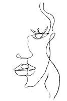 Deze abstracte tekening van een vrouw is gemaakt met zwarte lijnen op een witte achtergrond. De lijnen hebben een schetsmatig karkater en zijn ruw.
