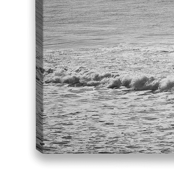 Mooi lijnenspel van de golven met surfers in zwart wit. Deze foto is genomen in Crozon in Bretagne waar ieder voorjaar- en najaar surfers de baaitjes bevolken en de golven bedwingen.