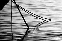 Abstract beeld van de ankertouwen van een boot, in het rimpelende water.