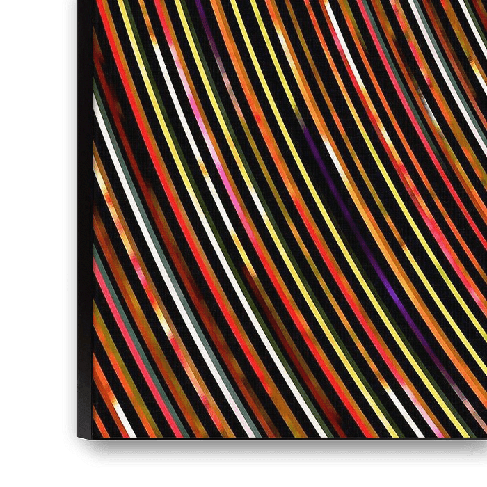 Streepjes in allerlei kleuren maken dit abstracte werk.