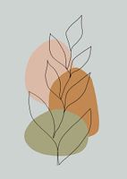 Een tak met bladeren omringt door organische vormen in trendy kleuren. Passend bij de trend van dit moment : Groovy champagne.