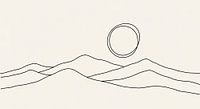Minimalistische illustratie van heuvels met een dubbele cirkel erboven, weergegeven in zwarte lijnen tegen een crèmekleurige achtergrond.
